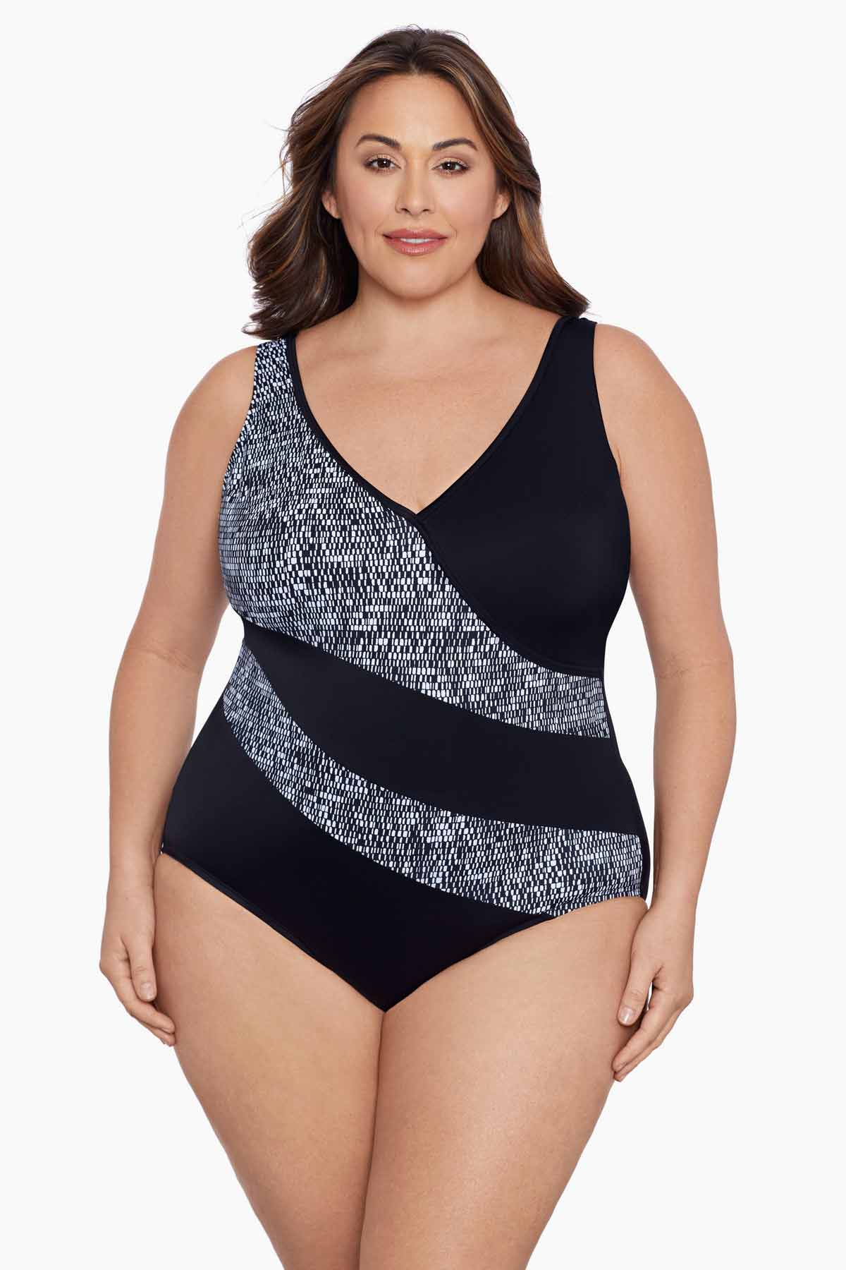 Inner firming shapewear in each Longitude swimsuit offers all day comfort while colorful prints and signature solid black styles grace this ageless swimwear. A longer length and finer fit enhance all figures, embracing confidence within.