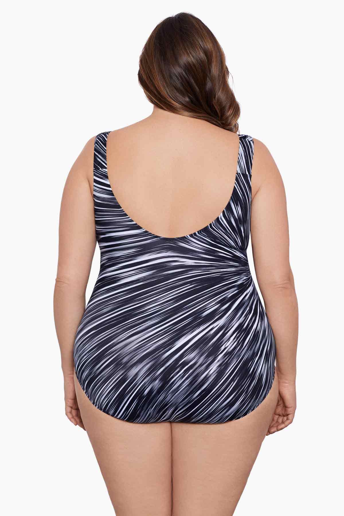 Inner firming shapewear in each Longitude swimsuit offers all day comfort while colorful prints and signature solid black styles grace this ageless swimwear. A longer length and finer fit enhance all figures, embracing confidence within.