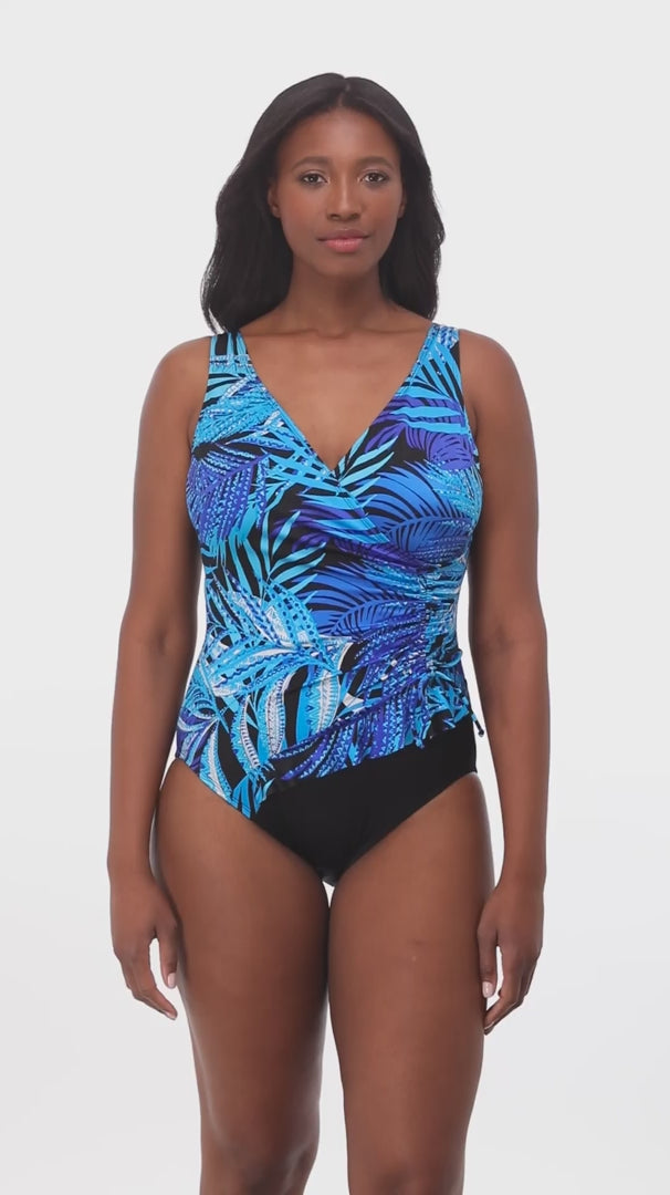 Inner firming shapewear in each Longitude swimsuit offers all day comfort while colorful prints and signature solid black styles grace this ageless swimwear. A longer length and finer fit enhance all figures, embracing confidence within.