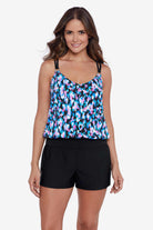 V-Neck Blouson Ring Tankini Top - Eternal Flame