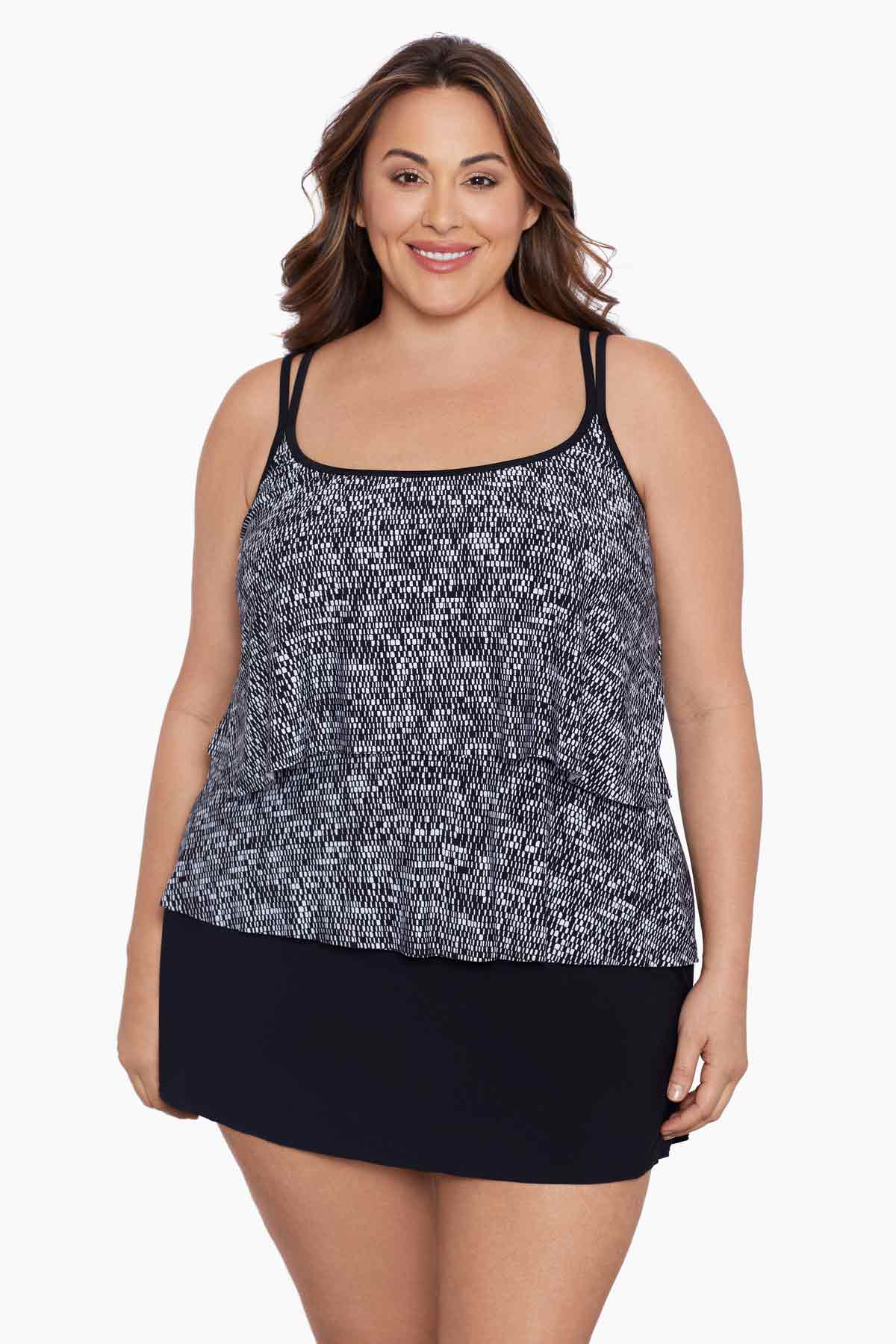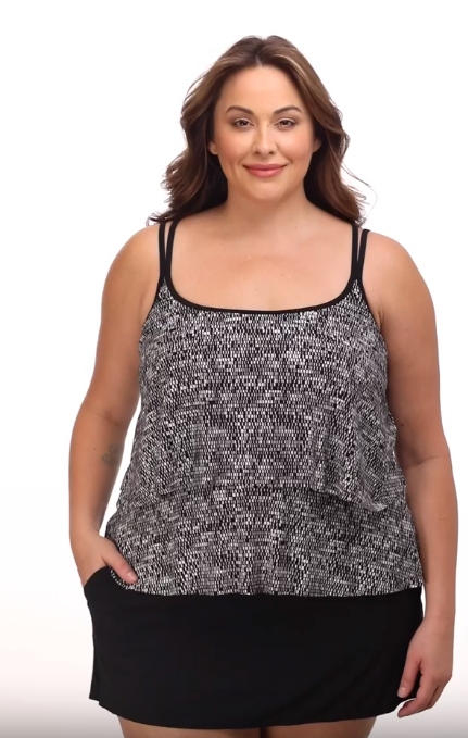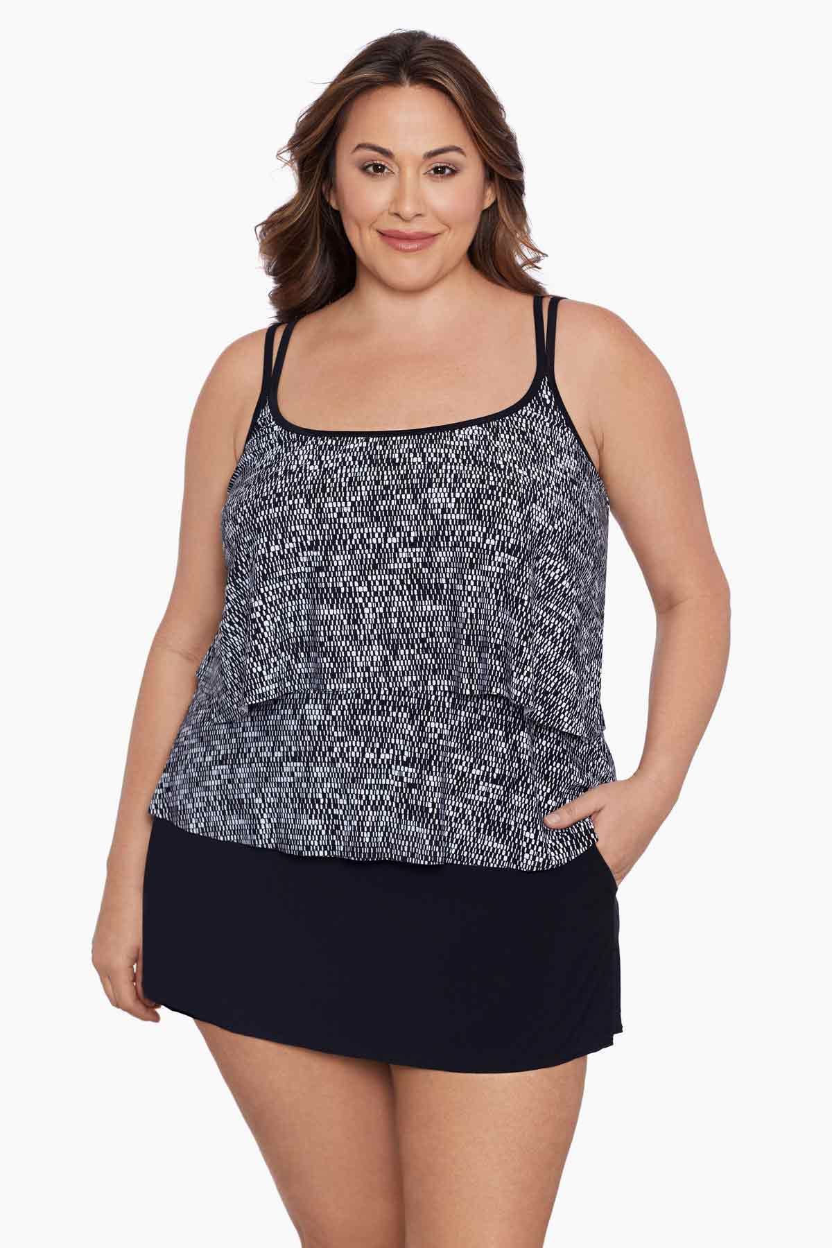 Plus Size Long Torso Double Ruffle Skirtini W/Pockets - Madison Square