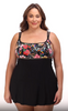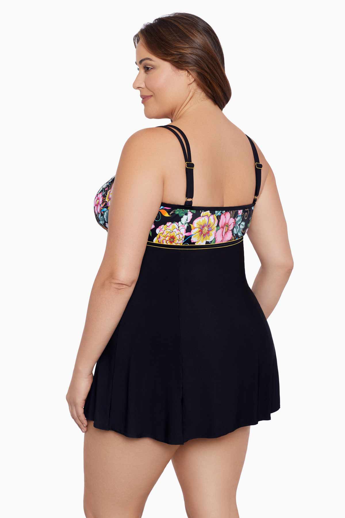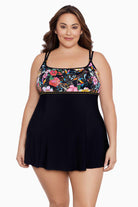 Plus Size Long Torso Empire Princess Seam Swim Dress W /Hardware - True Romance