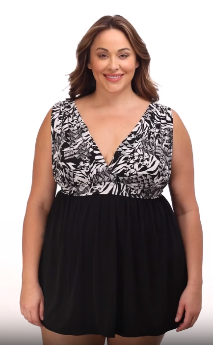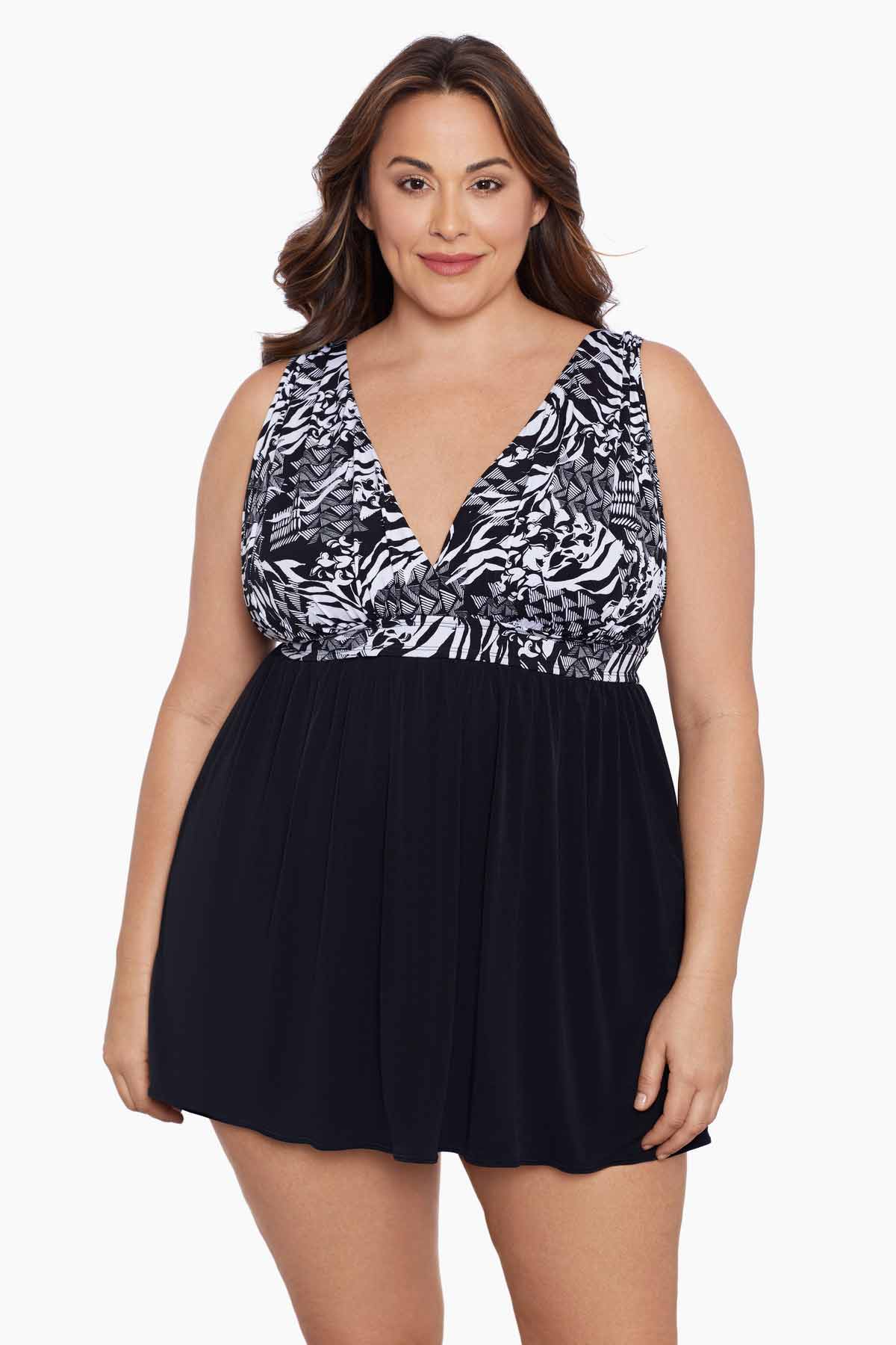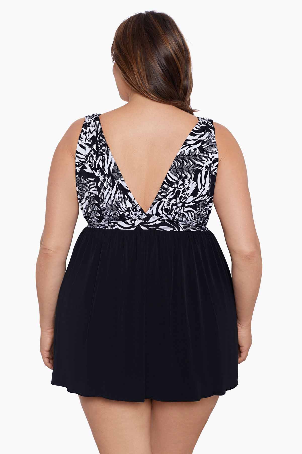 Plus Size Goddess Long Torso Swim Dress - Azteca