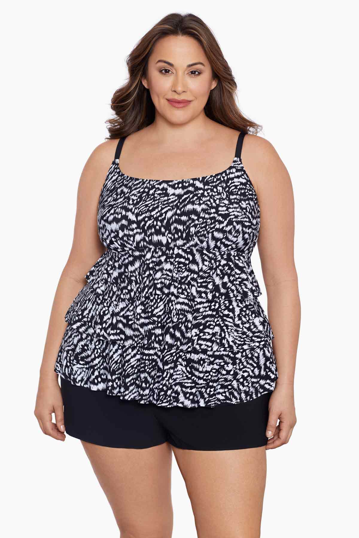 Plus Size Long Torso Ruffle Faux Shortini - Super Sleek