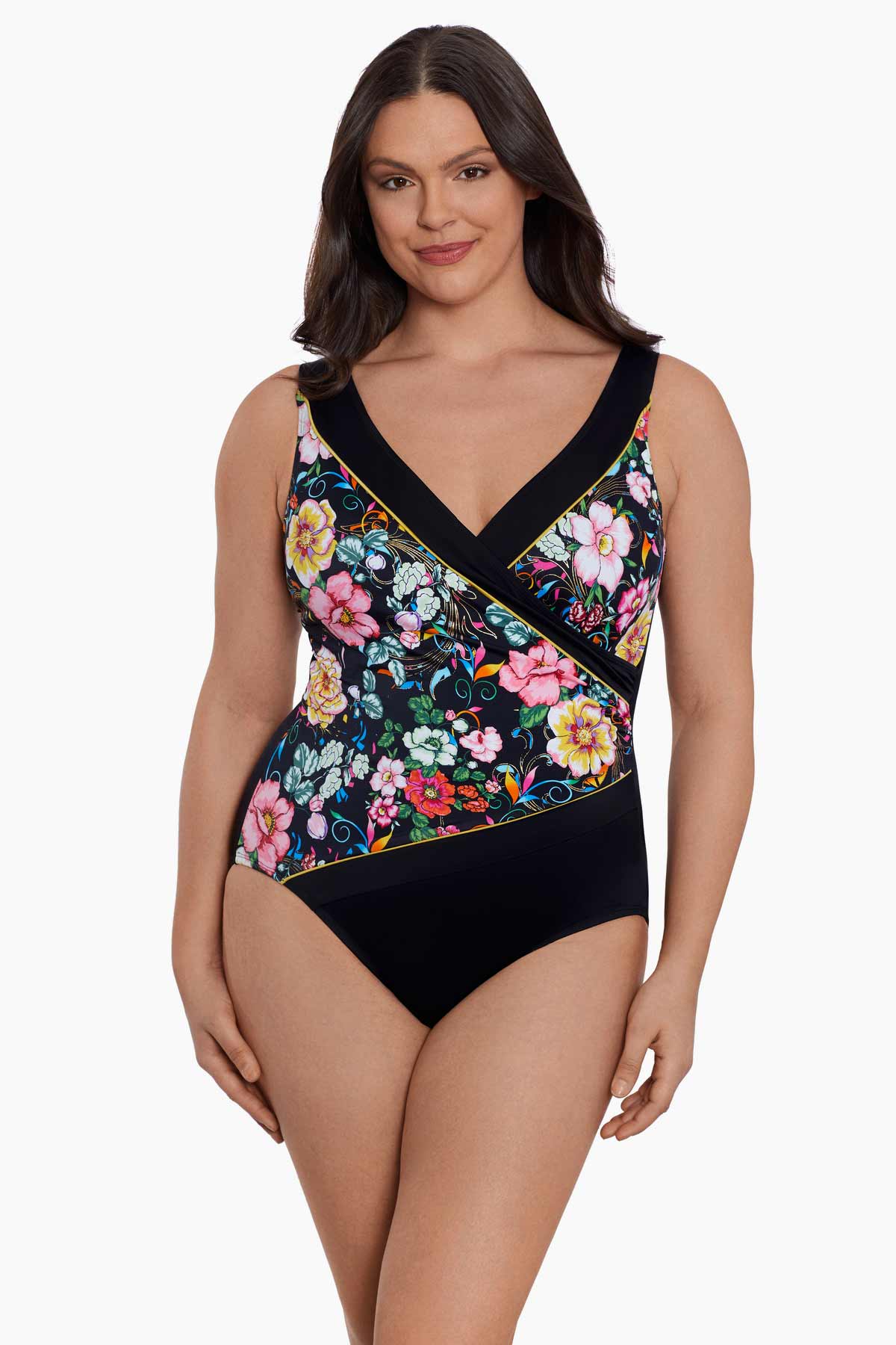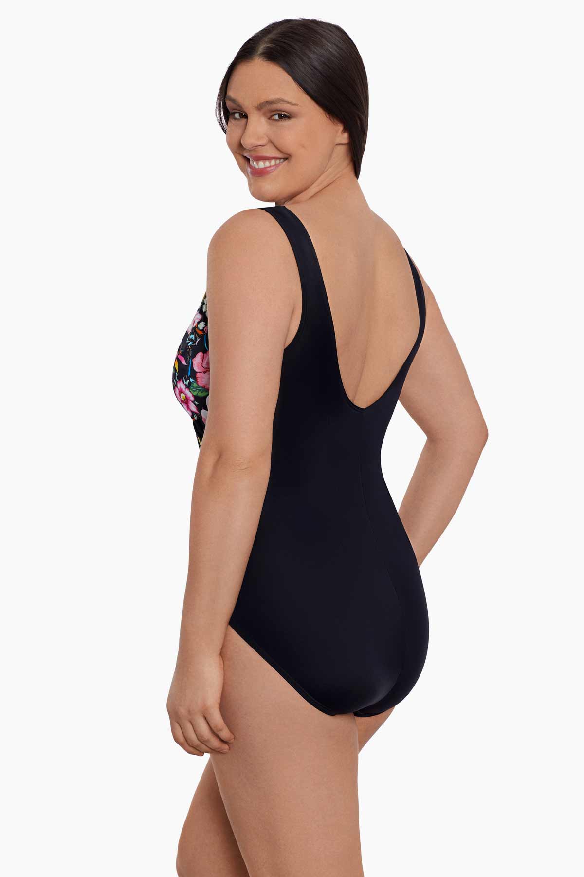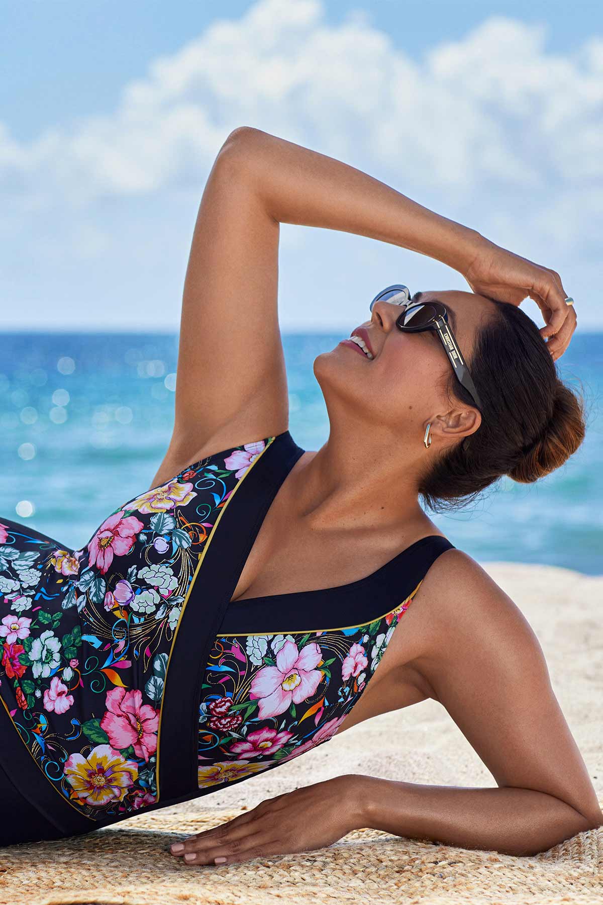 Inner firming shapewear in each Longitude swimsuit offers all day comfort while colorful prints and signature solid black styles grace this ageless swimwear. A longer length and finer fit enhance all figures, embracing confidence within.
