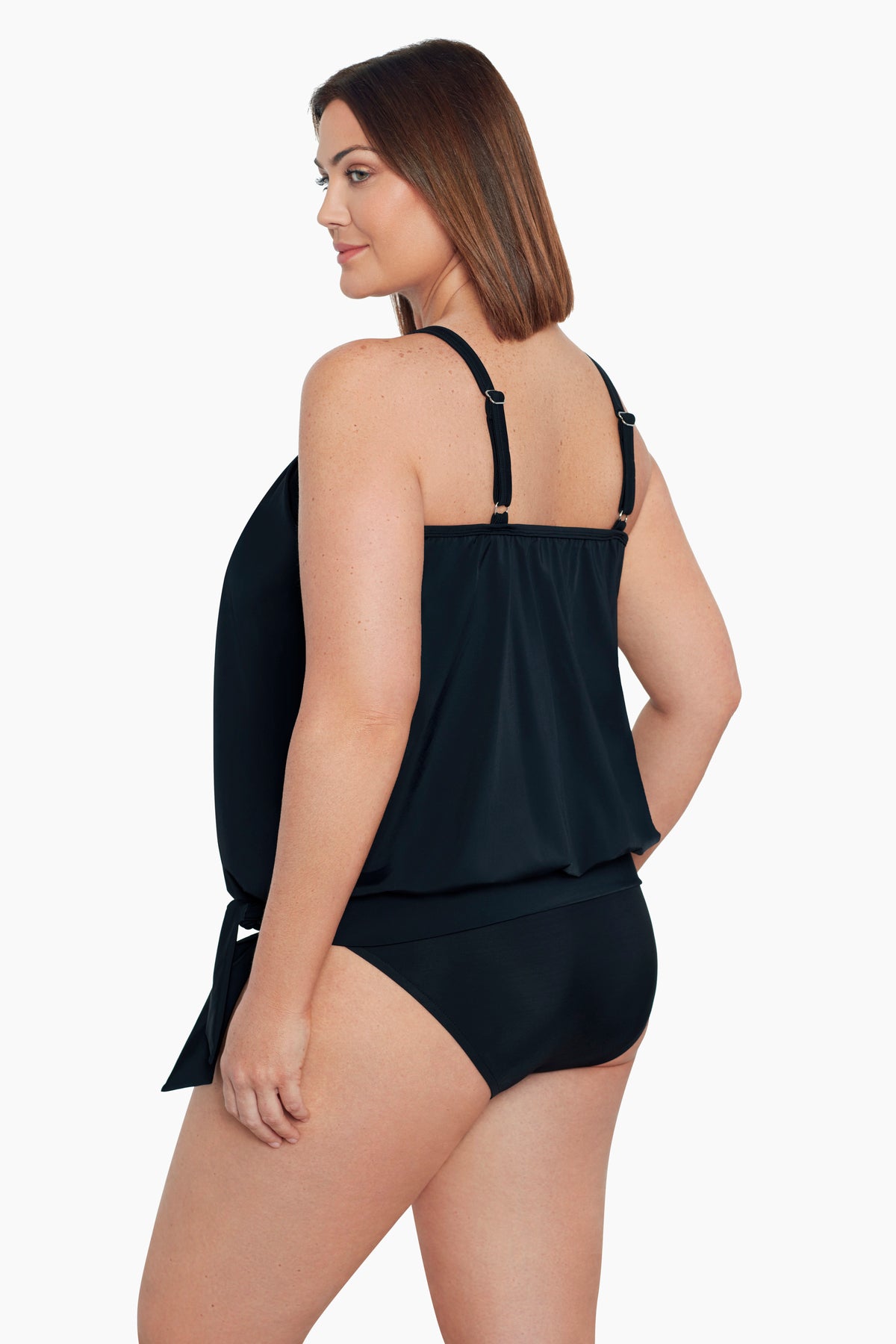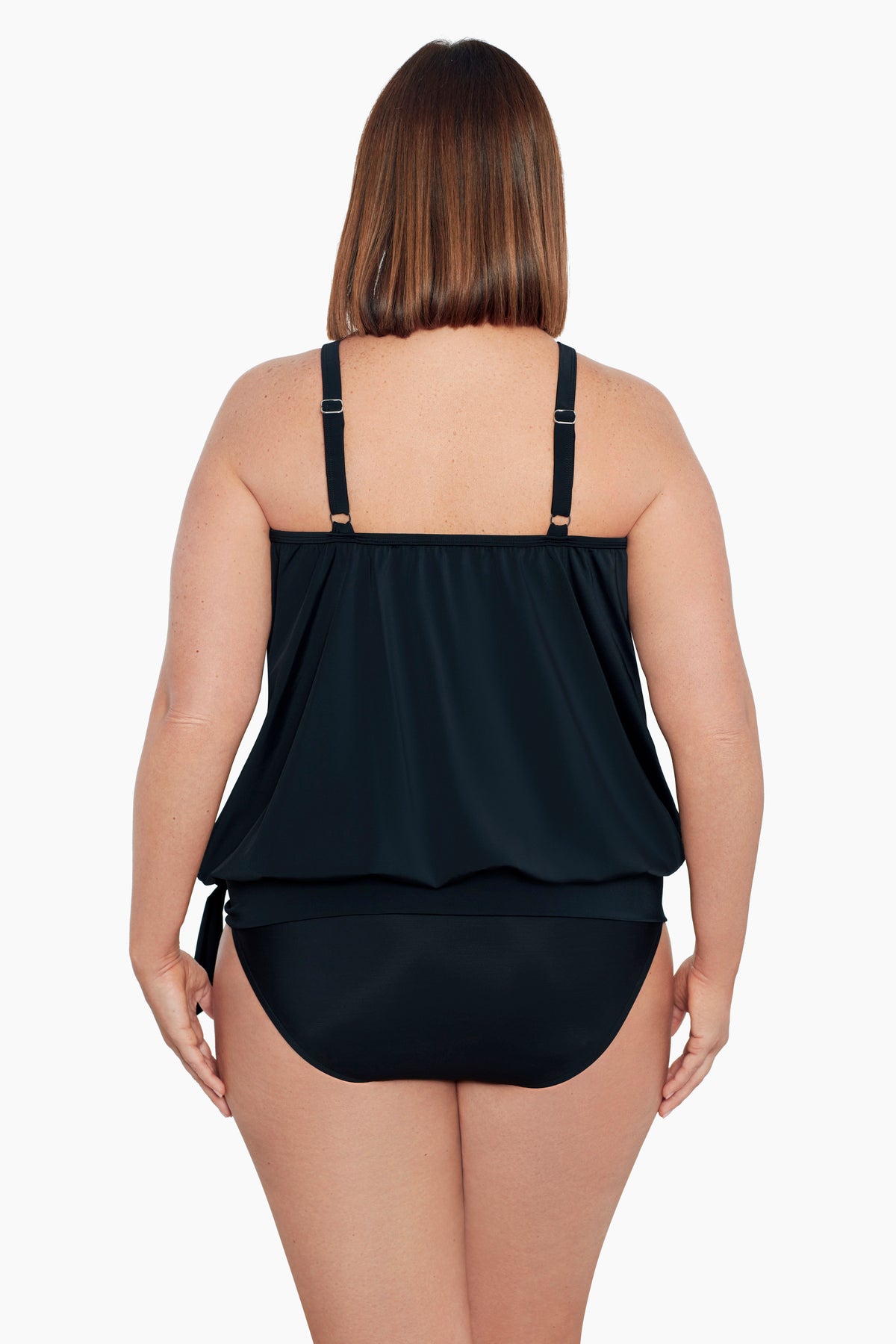 Plus Size High Neck Blouson Tankini Top W/ Mesh Inserts - Meshed Up