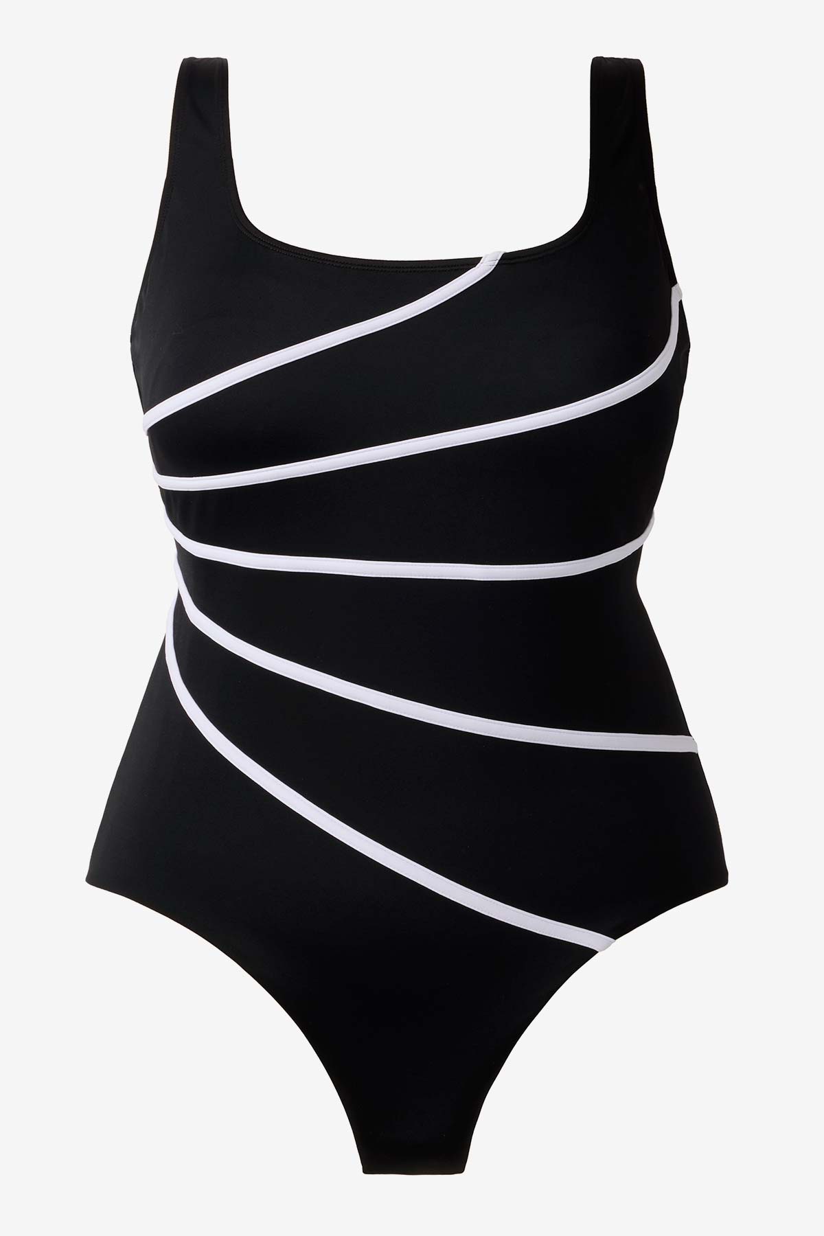 Modern Leg Plus Size Long Torso Fan Tank One Piece - Black/White Solidtude