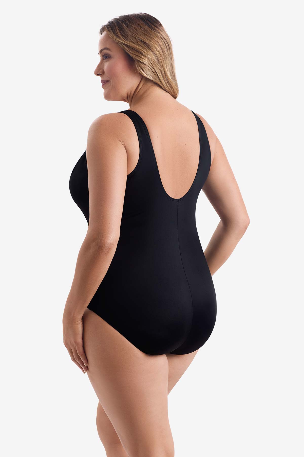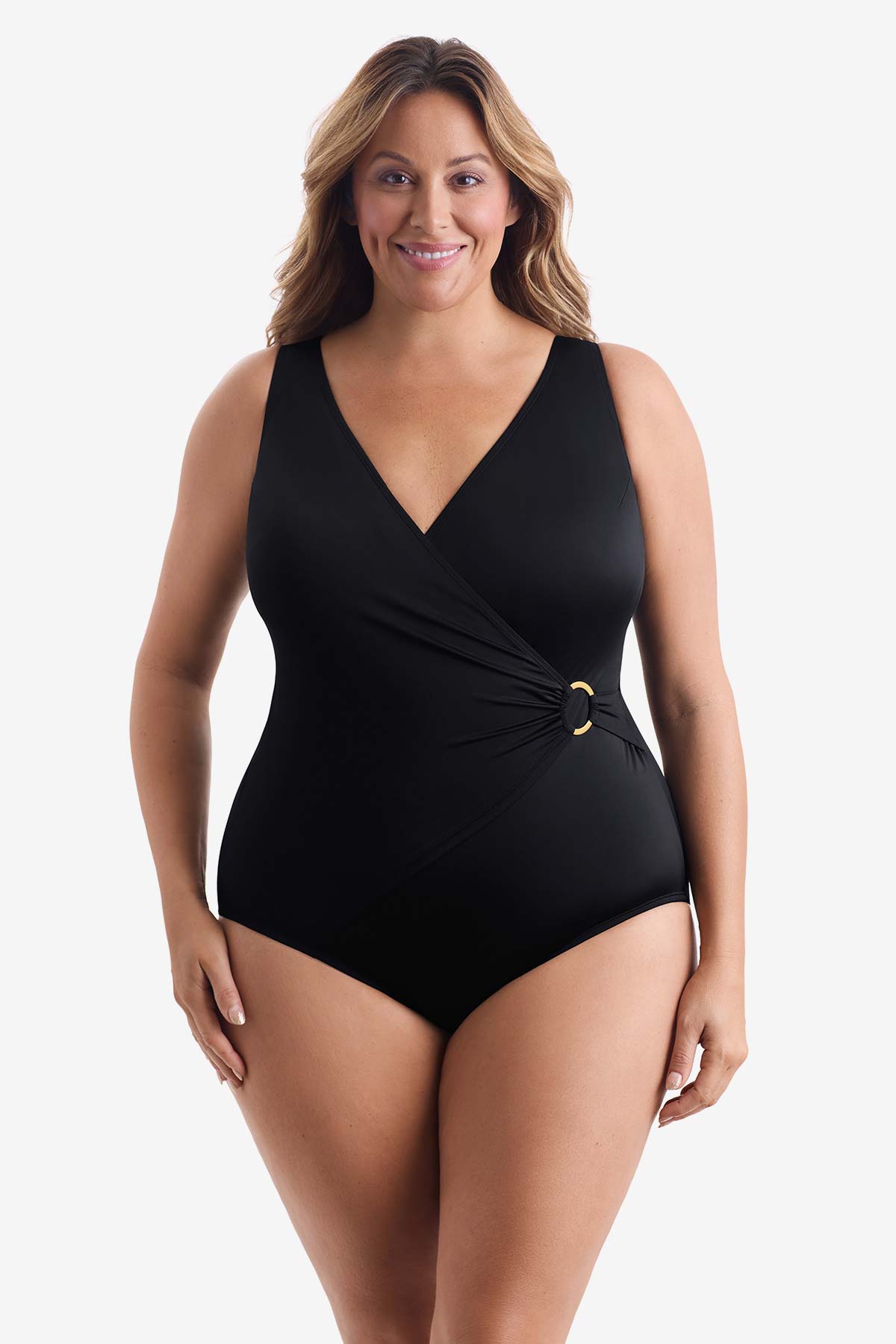 Channel poolside glamour. With a daring plunging neckline, sleek tummy control and O-ring hardware that gives a touch of glam, this one-piece takes your swim look to the next level. Wear it. Own it. Because this suit is all about attitude.