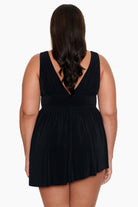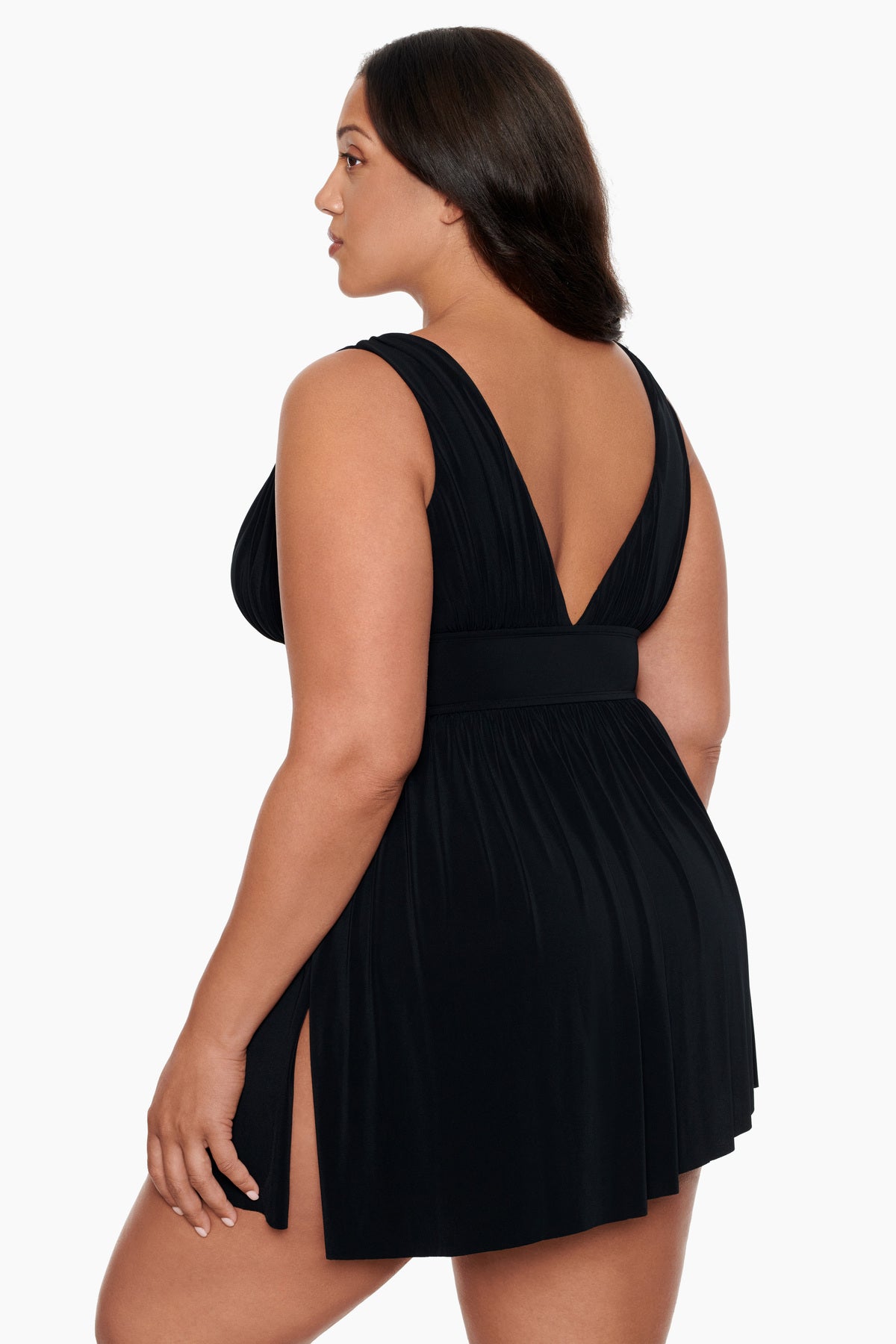 Plus Size Long Torso Goddess Flyaway Swim Dress - Black Tie