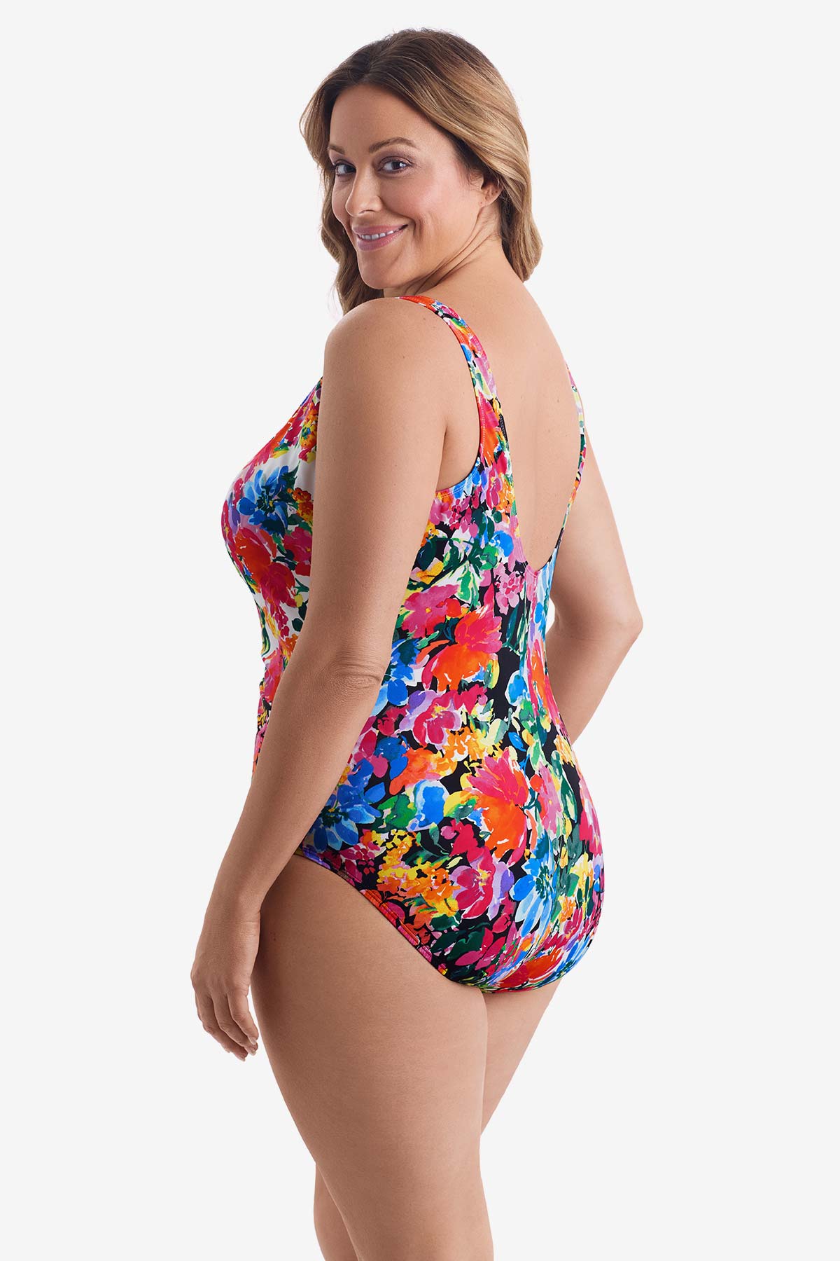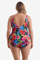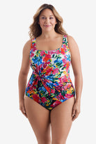 Plus Size Long Torso Twist Draped One Piece - Blooming Bouquet