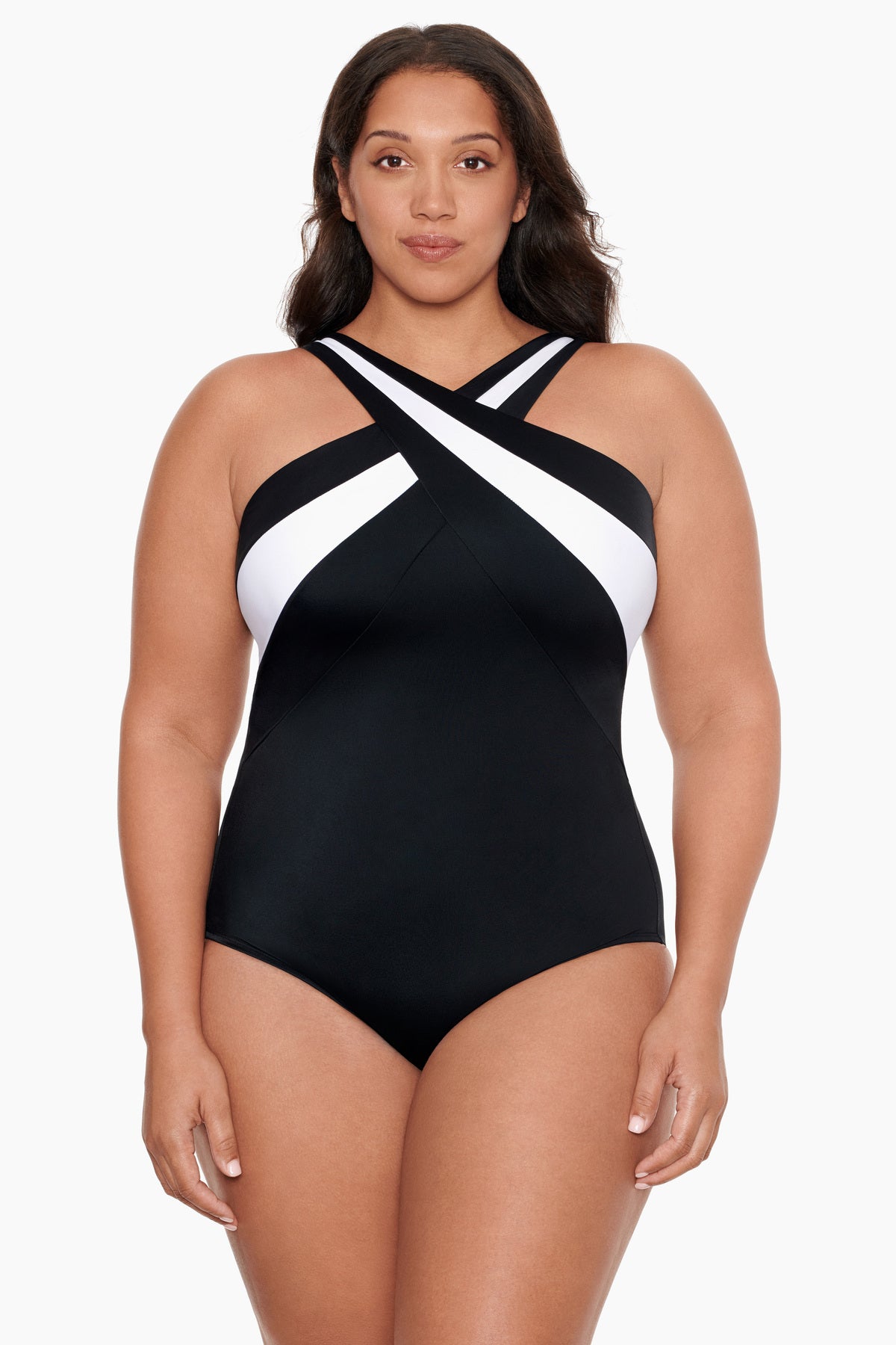 Plus Size Long Torso Crossover Inset One Piece - Private Party