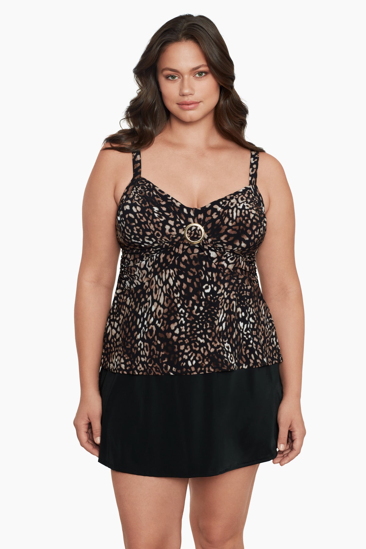 Plus Size Cara Tankini Top - Night Cheetah