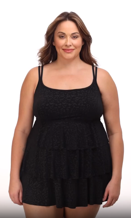Plus Size Long Torso Triple Tier Swim Dress - Boss Lady