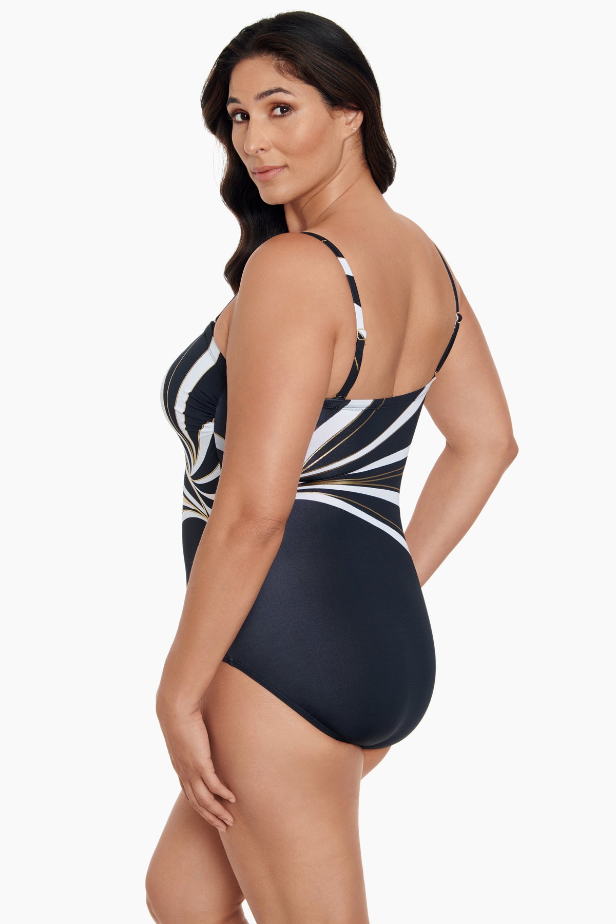 Inner firming shapewear in each Longitude swimsuit offers all day comfort while colorful prints and signature solid black styles grace this ageless swimwear. A longer length and finer fit enhance all figures, embracing confidence within.