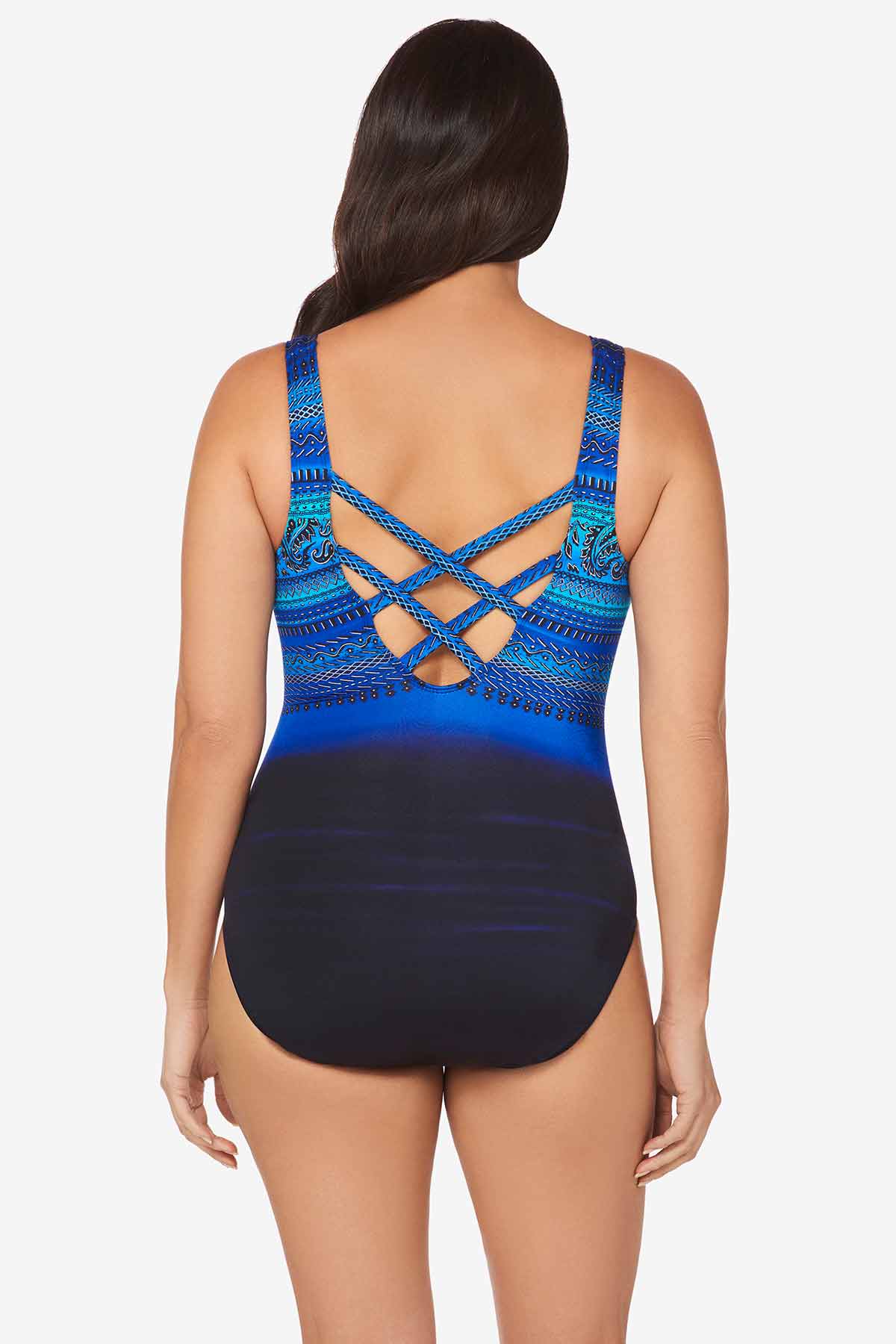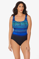 Inner firming shapewear in each Longitude swimsuit offers all day comfort while colorful prints and signature solid black styles grace this ageless swimwear. A longer length and finer fit enhance all figures, embracing confidence within.