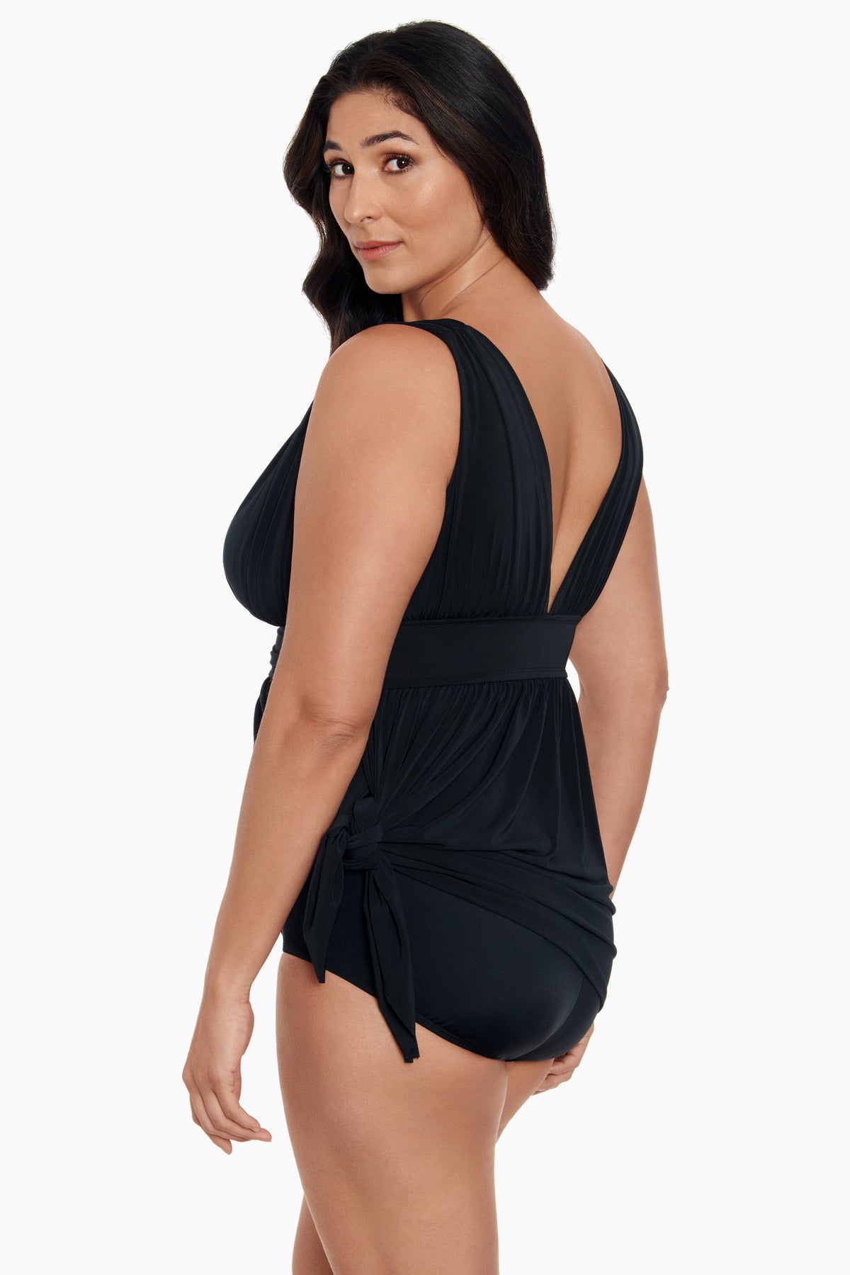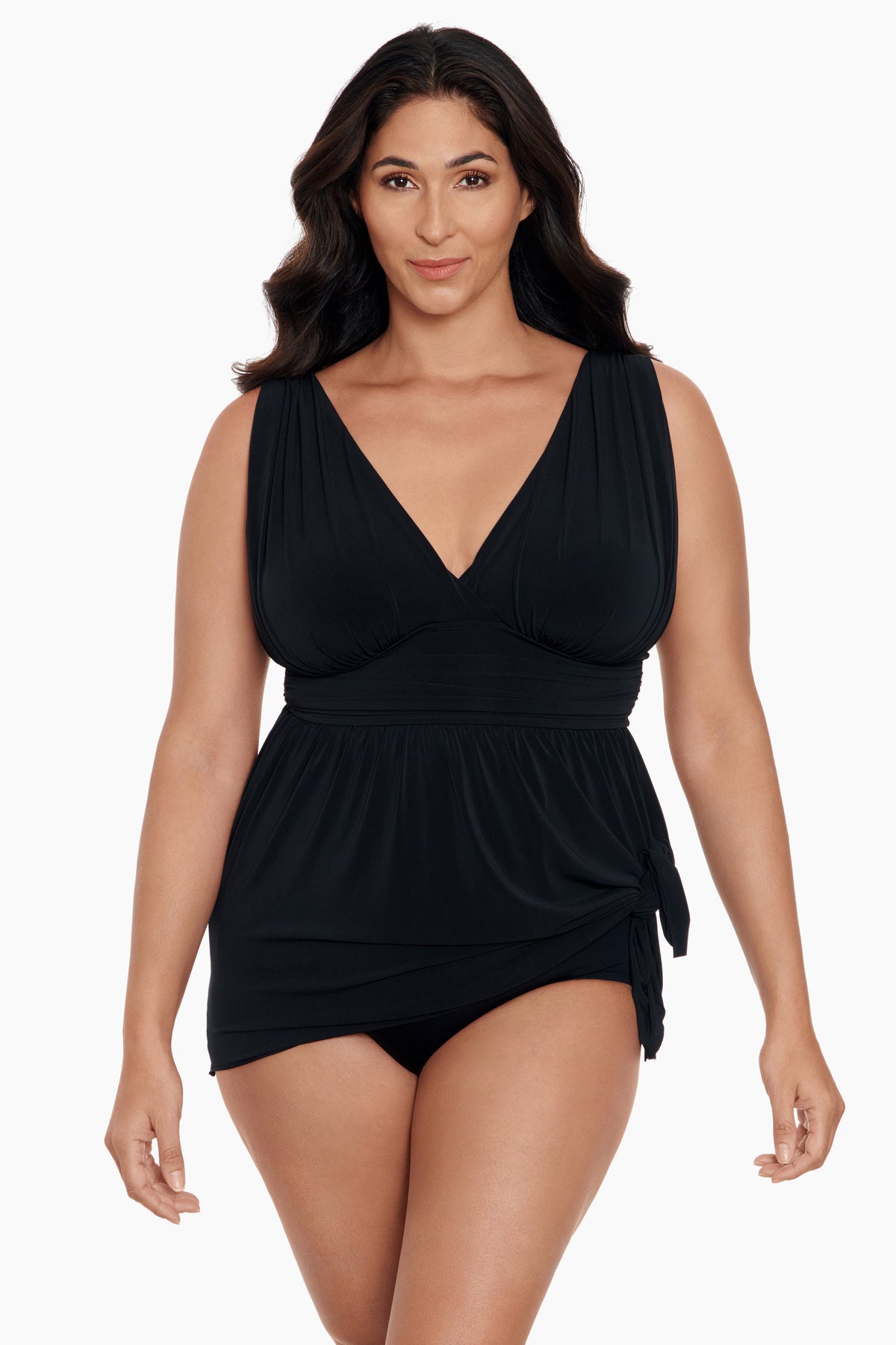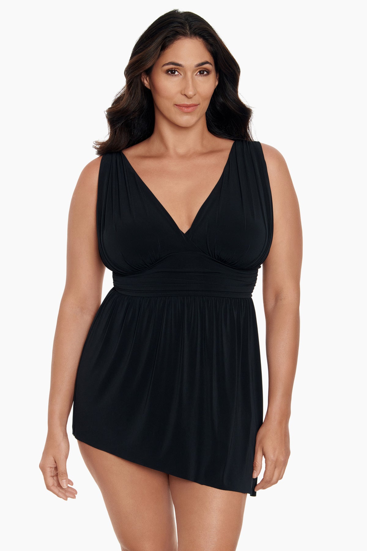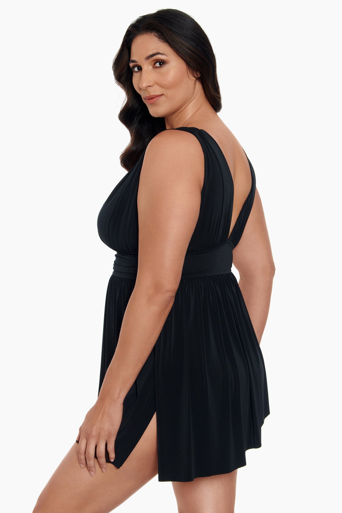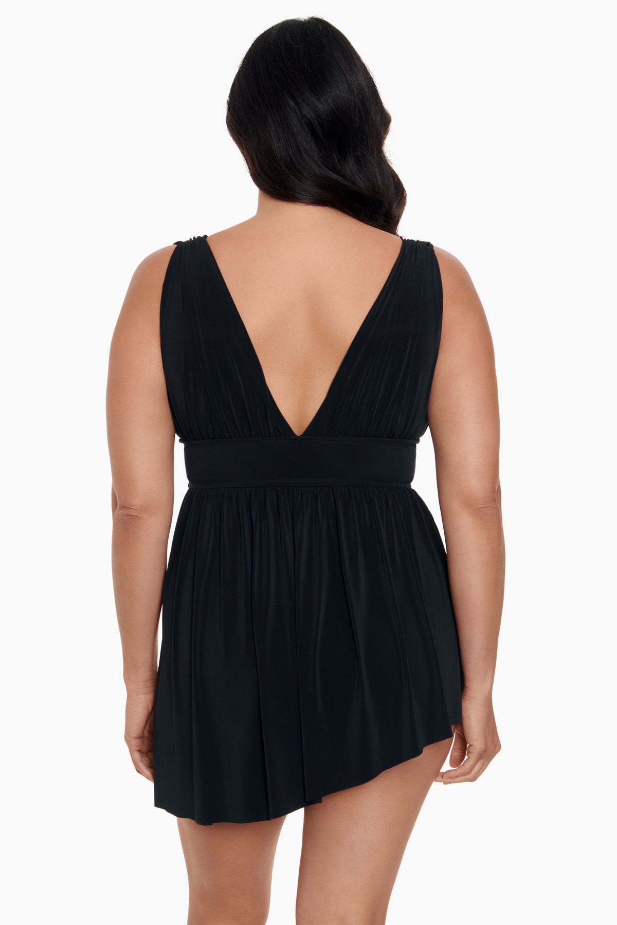 Long Torso Goddess Flyaway Swim Dress - Black Tie