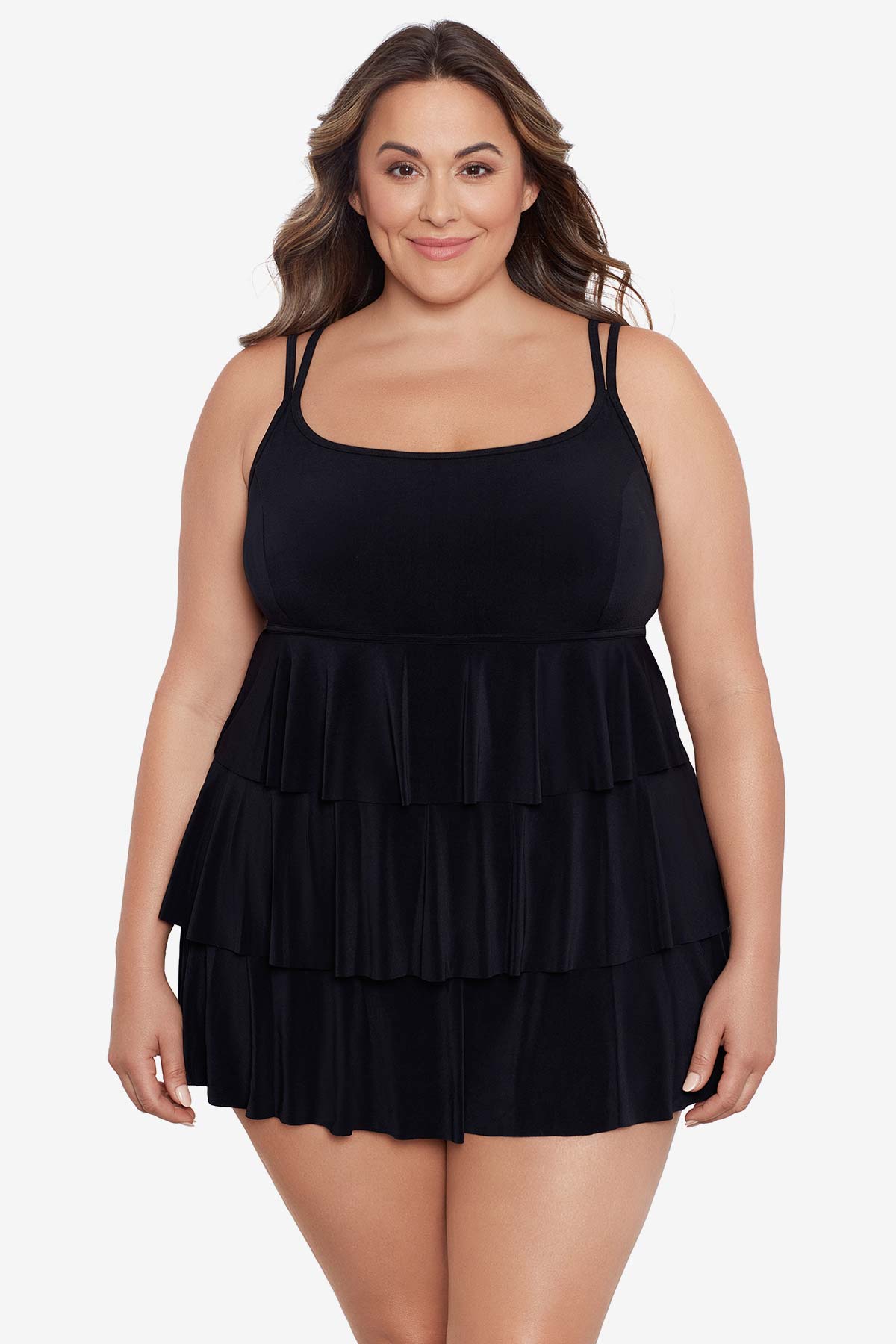 Long Torso Triple Tier Swim Dress - Night Gala