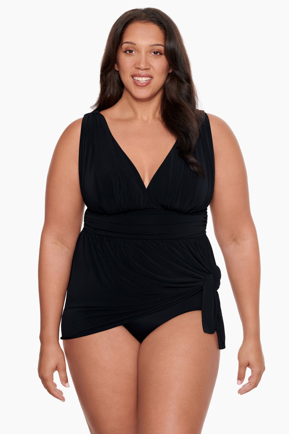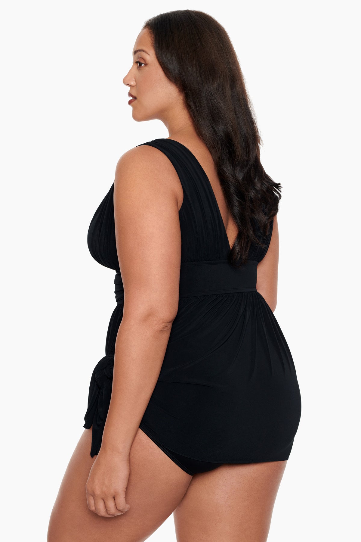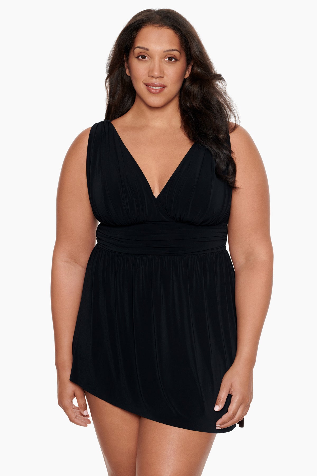 Plus Size Long Torso Goddess Flyaway Swim Dress - Black Tie