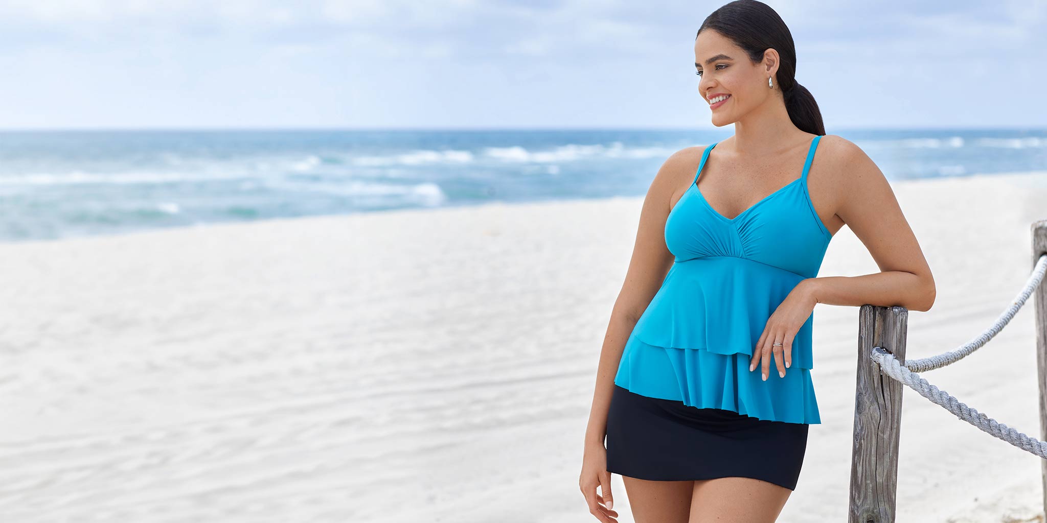 Amp up your beach style with this chic Shapesolver Triple Tier Tankini. The tiered ruffles offer a stunning visual effect while enhancing your natural curves in all the right ways.