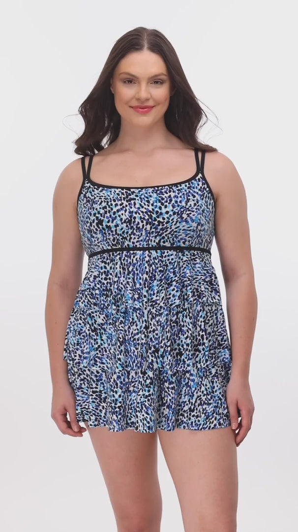 Long Torso Triple Tier Swim Dress - Spotty Skin
