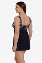 Inner firming shapewear in each Longitude swimsuit offers all day comfort while colorful prints and signature solid black styles grace this ageless swimwear. A longer length and finer fit enhance all figures, embracing confidence within.