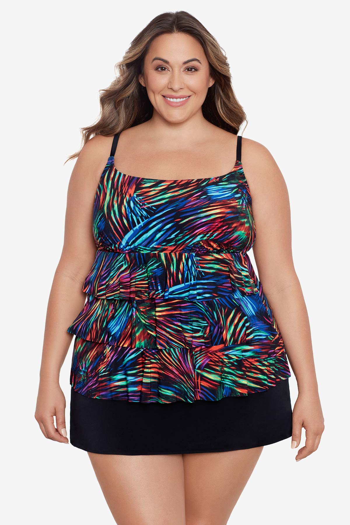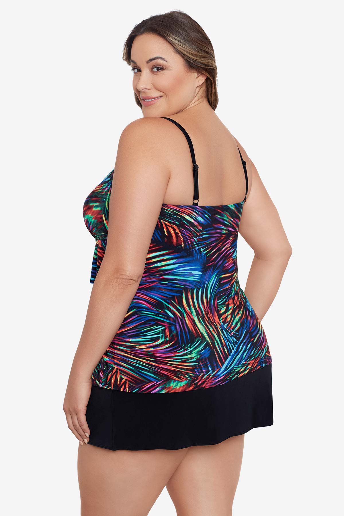 Long Torso Ruffle Faux Skirtini - Rainbow Glow